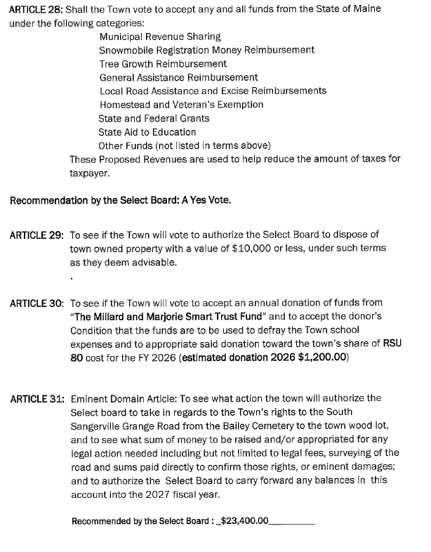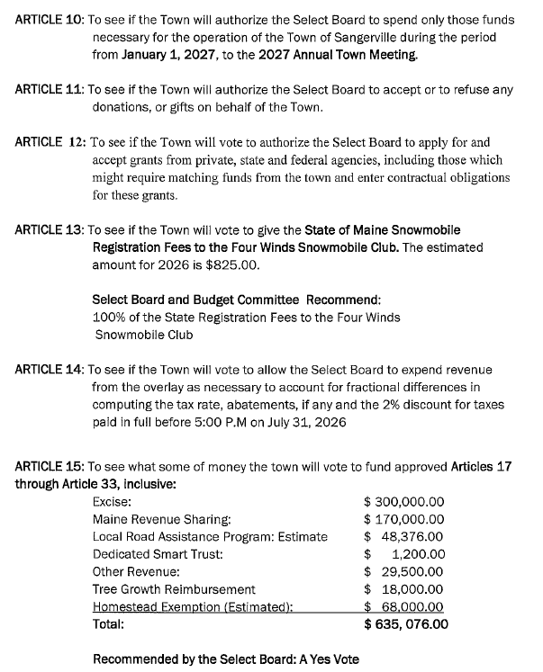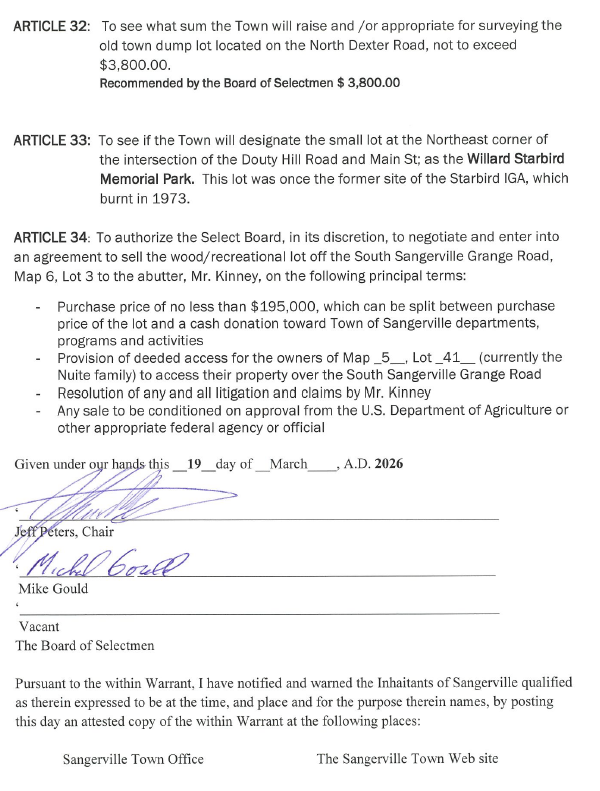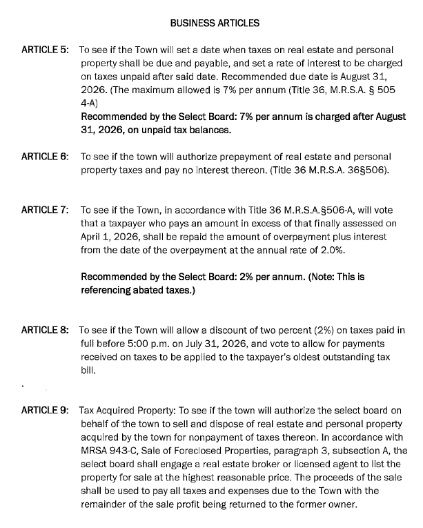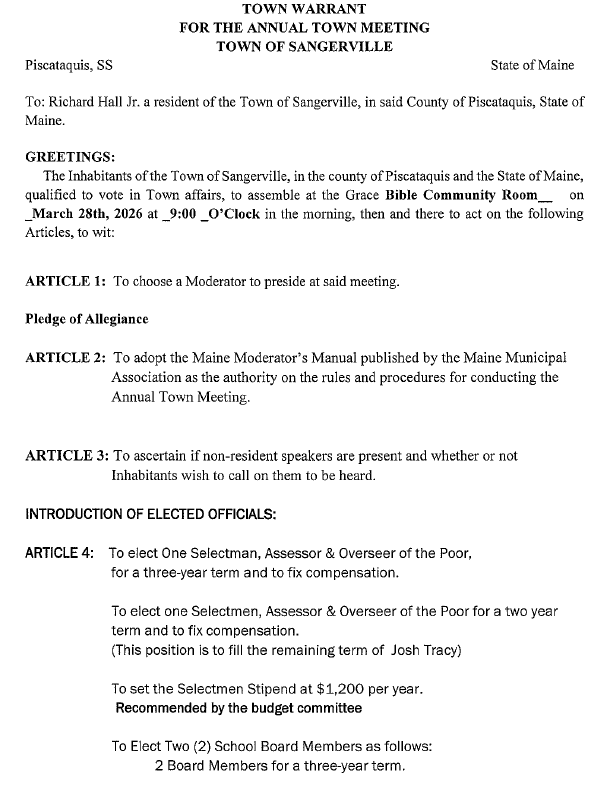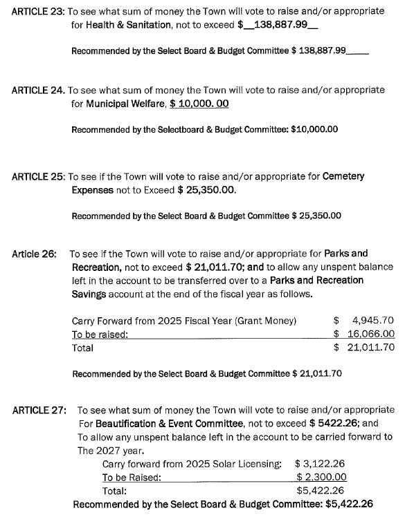 2026 Annual Town Meeting Warrant